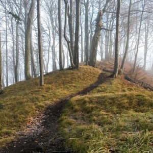 path emerging from fog
